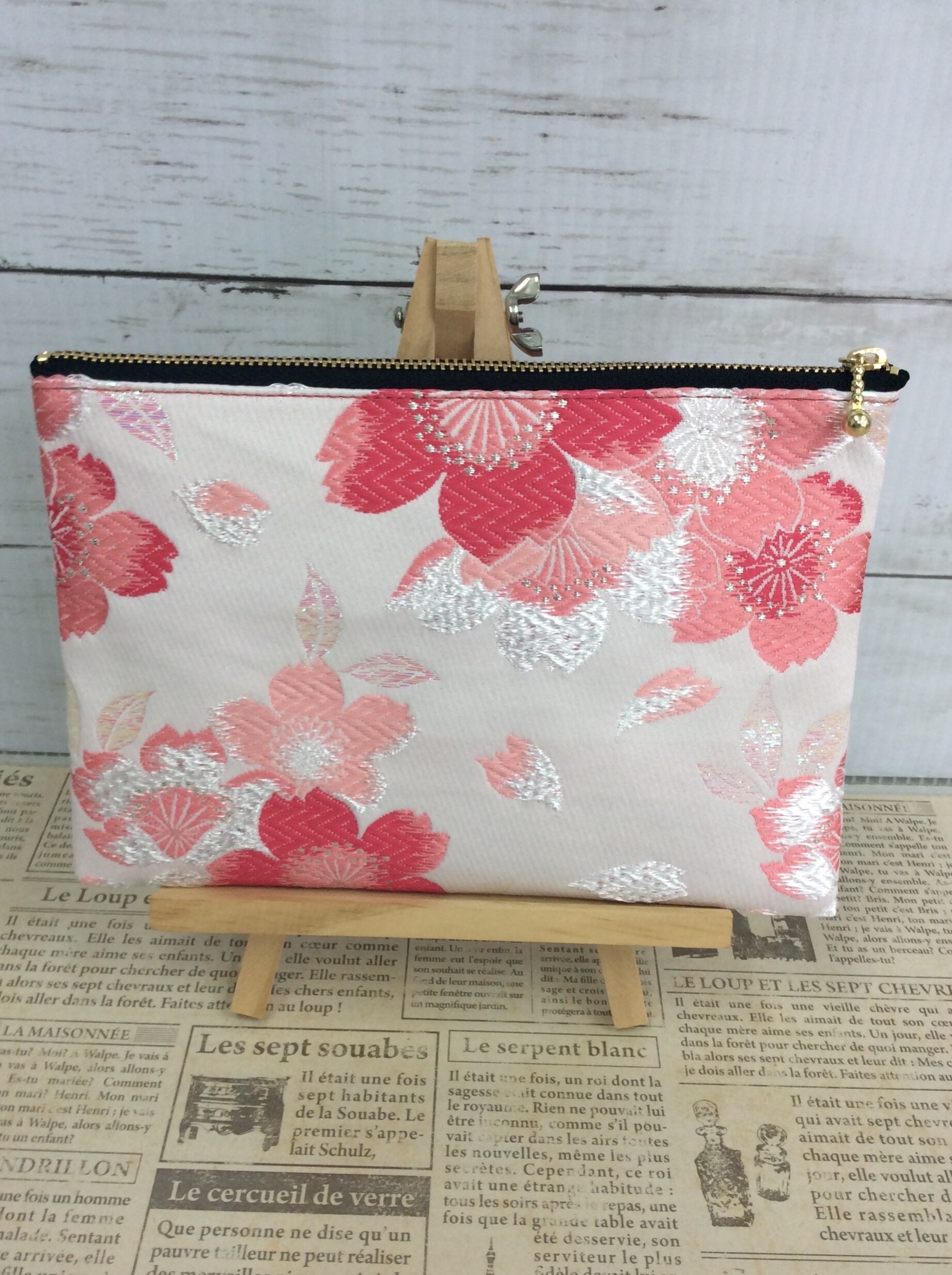 京都 西陣織 金襴 生地で仕立て 和柄 ポーチ 20cmファスナー Lサイズ